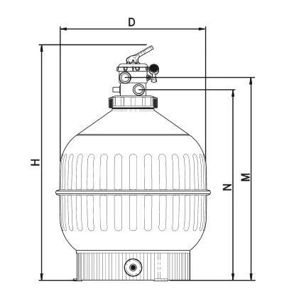 De Astral Cantabric Top Mount zandfilter wordt geleverd incl een top mount 6-weg kraan.
