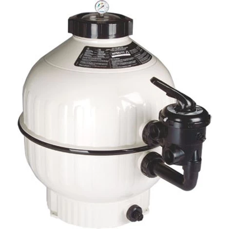 Een zeer veel verkocht zwembad zandfilter of, tegenwoordig glas filter, vervaardigt uit resistent kunststof (polypropyleen), bestand tegen de effecten van chemische stoffen en de weersomstandigheden.