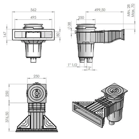 Met dit model kunt u een waterstand realiseren die gemiddeld 5 tot 10 cm hoger ligt dan bij het gebruik van standaard skimmers.