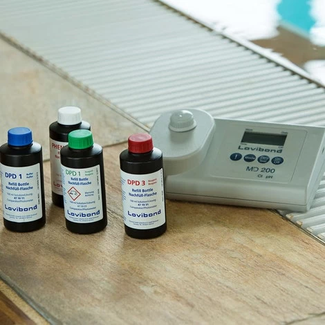 De MD 200 heeft een aantal technische verbetering tov de MD 100: Scroll Memory (SM) De diverse meetfuncties zijn te kiezen door het apparaat in te stellen op de juiste functie. De Scroll Memory functie zorgt er voor dat je altijd in de meetmodus terecht komt die je het laatste hebt gebruikt. Ook als je het apparaat na het meten hebt uit gezet en een volgende keer weer een meting wilt gaan uitvoeren. One Time Zero (OTZ)De OTZ functie zorgt ervoor dat je maar één keer een 0-waarden meting hoeft uit te voeren. De MD 200 onthoudt deze waarde tot dat je klaar bent met je water metingen en het apparaat uitschakelt. Dit is met name handig als je meerdere waarden per bassin meet. Per bassin moet je natuurlijk wel een 0-meting uitvoeren. De tests worden uitgevoerd met behulp van een reagens. U kunt hiervoor de Lovibond tabletten gebruiken. U neemt een water monster, voert een nul meting uit en vervolgens doet u nog een meting waarin een reagens in is opgelost. Vervolgens geeft de MD 200 u de meetwaarde. U kunt overigens ook Lovibond vloeistof reagens gebruiken of Vario poeder.