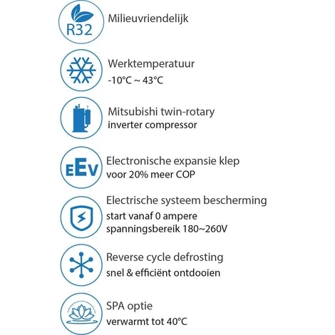 De full inverter technologie houdt rekening met buiten- en watertemperatuur en zal hierdoor traploos schakelen naar het ideale toerental op minimale stroomkosten.