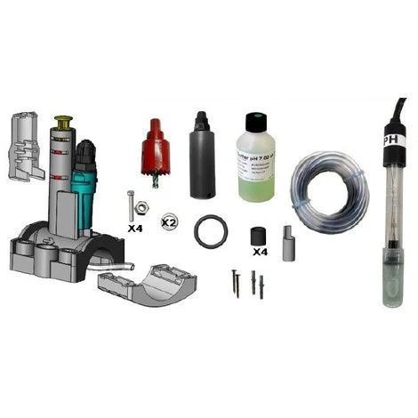 Wij leveren dit systeem compleet met een installatiekit, waarin een 2 in 1 sensorhouder zit, de , RX sensor en zelfs het een gatenboor voor de juiste diameter boring in de zwembad leiding.