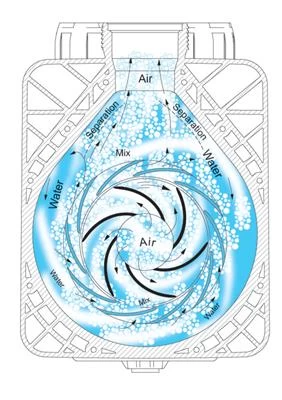 zo is de waaier en difuser vernieuwd en heeft daardoor een betere en hogere doorstroom snelheid.