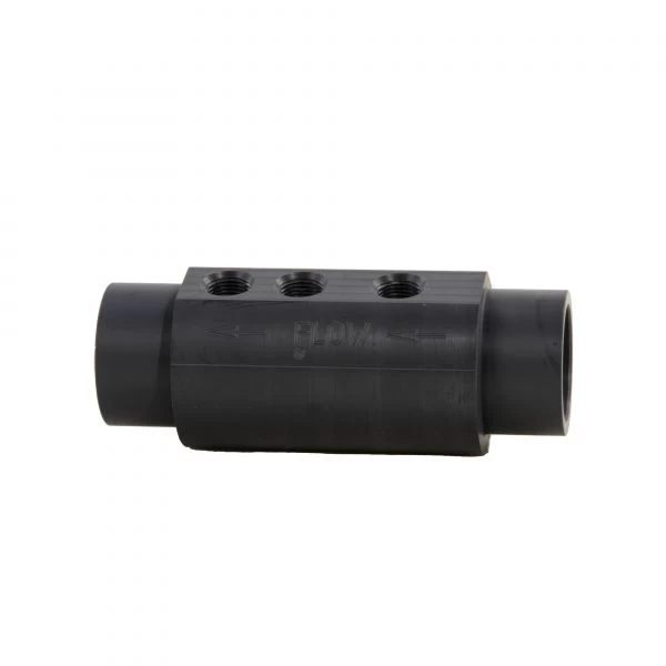 In de houder kan een 50 mm leiding gelijmd worden, bij een 63 mm leiding moet er een 63 mm inwendige sok, 3-delige koppeling, kogelkraan o.i.d. gebruikt worden.