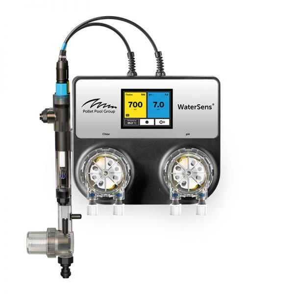 WATERSENS zorgt ervoor dat geheel automatisch, controle en bijsturing van het pH- en chloor gehalte in het zwembad plaats vind en daarmee ook nog met een minimaal gebruik aan chemicaliën.