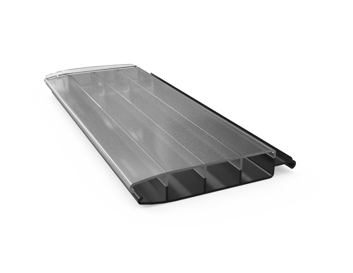 De Polycarbonaat Metalic lamellen zijn leverbaar in de kleuren Transparant, Solar, Metalic Solar en Platinum Solar.
