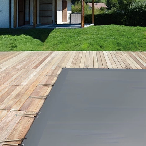 In het midden word het zwembad winterzeil voorzien van een waterdoorlatend, met gaas verstevigd.
